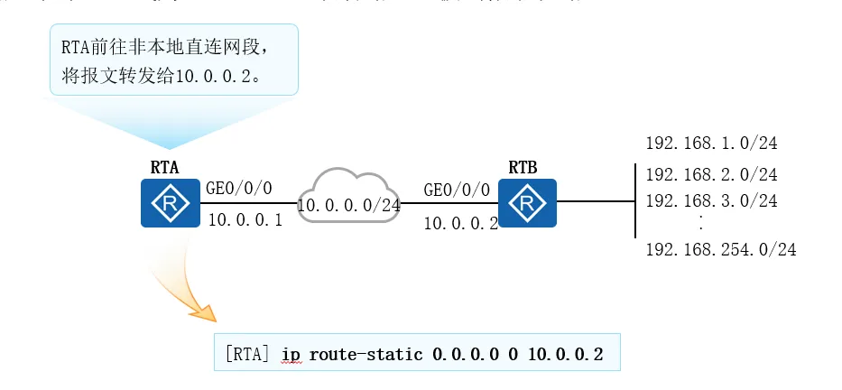 - 静态路由:由管理员手动为路由器指定的路由信息