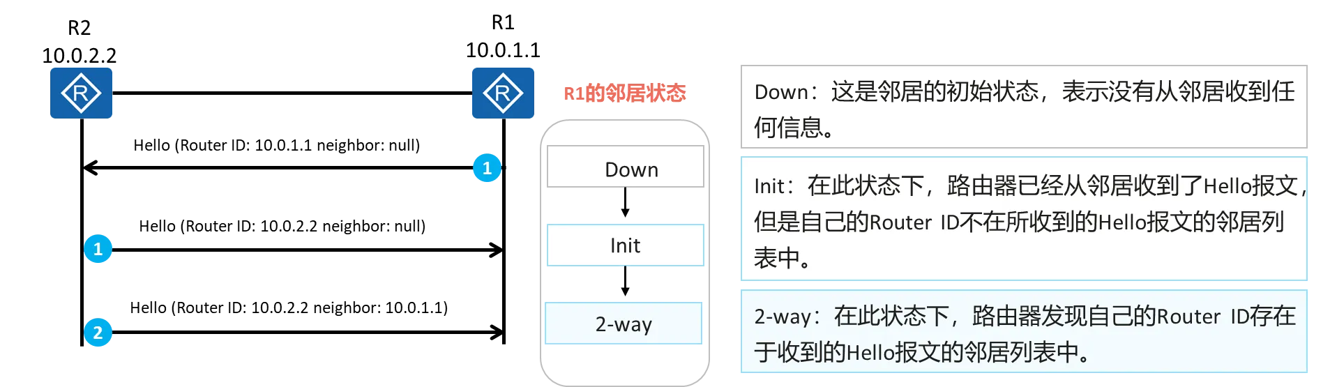 - 状态机依赖:缺少 DR 时,邻居关系将停滞在 Two-way 状态,无法建立完全邻接