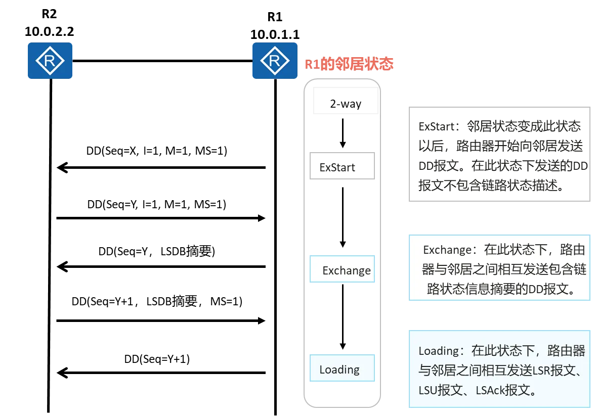 - 点对点网络(如只有两台设备):在这种情况下,两台路由器直接建立邻接关系并进行数据库同步,过程高效且直接。