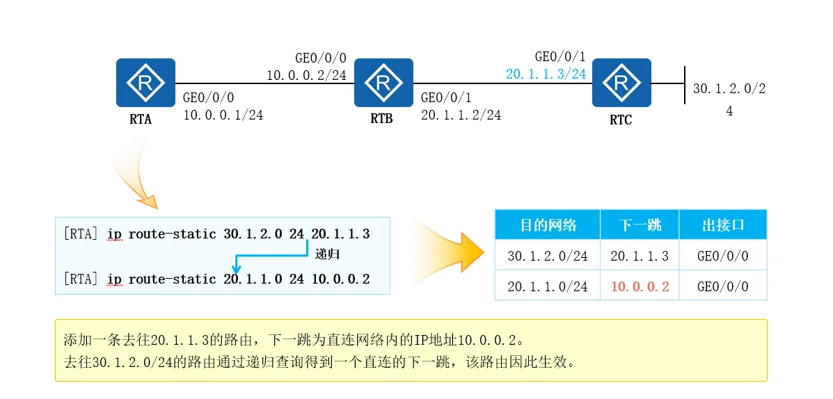 (Indirect Route)- 需要手动或通过协议学习获得的路由- 静态路由